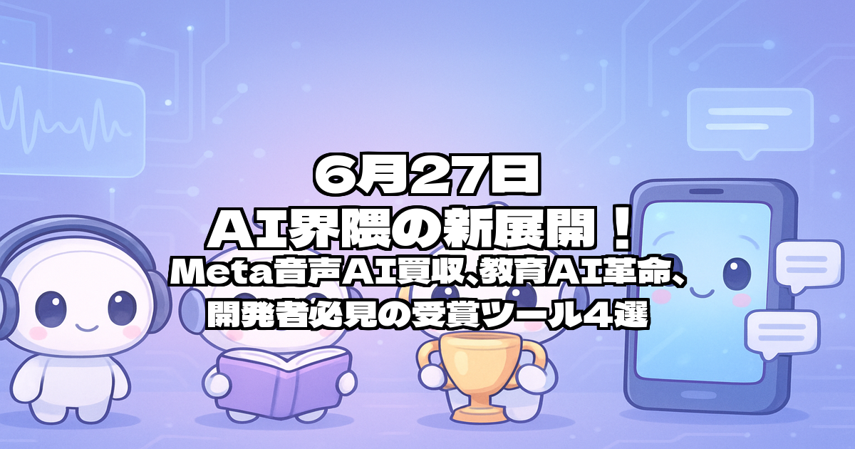 6月27日 AI界隈の新展開!Meta音声AI買収、教育AI革命、開発者必見の受賞ツール4選